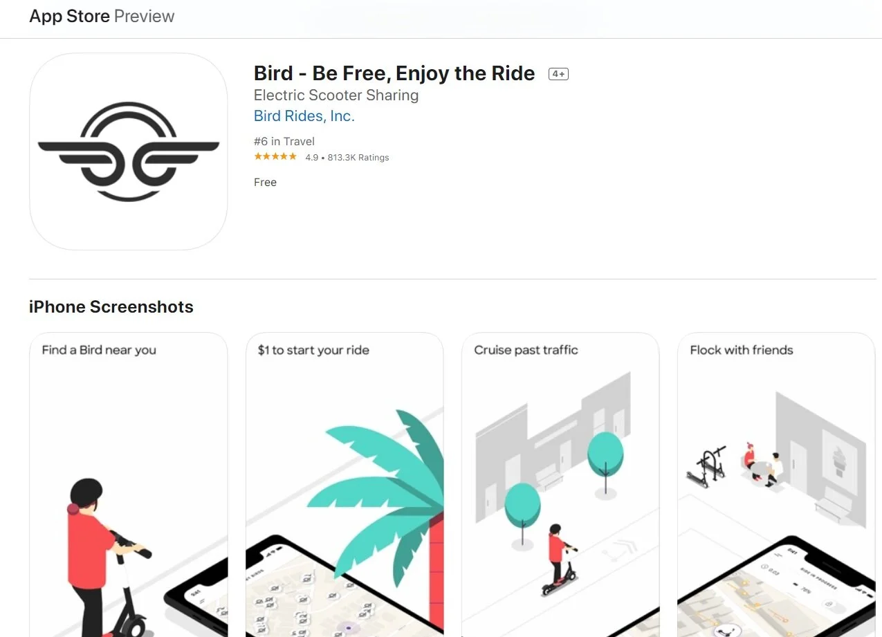 As we are using Bird scooters you’ll need to search for “Bird Scooter” to find the app.